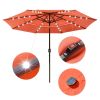 - Energy-saving Solar LED Umbrella - 10 ft 3 Tier Patio Umbrella features LED lights on ribs; powered by solar panel; charging during day to provide efficient illumination at dusk and night; eco-friendly and energy saving; shining lights on the ribs like stars to create romantic ambience