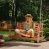 112*53*52cm 500lbs With Chain Double Wooden Swing Reddish Brown