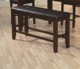 Product Description: This counter height bench adds great seating to complement the rectangular counter height table. The tufted upholstery seat with the look of leather fabric adds chic sophistication to this contemporary style bench.