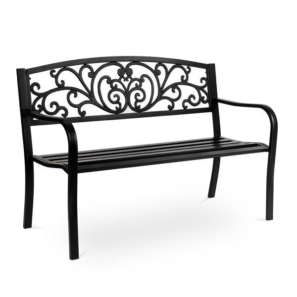 This beautifully designed powder coated bench will add elegance to your front or backyard, which will be a great addition to garden or make a completion for your path. This bench features powder-coat steel construction to deliver durability and light weight, and the antique finish adds an attractive look to your patio or deck. The stylish design on the backrest provides a stylish look, and the bench is easy to assemble. Beautifully designed powder coated bench will add elegance to your front or backyard, ideal for along a path, under a tree, among the flowers or in your favorite peaceful spot.
