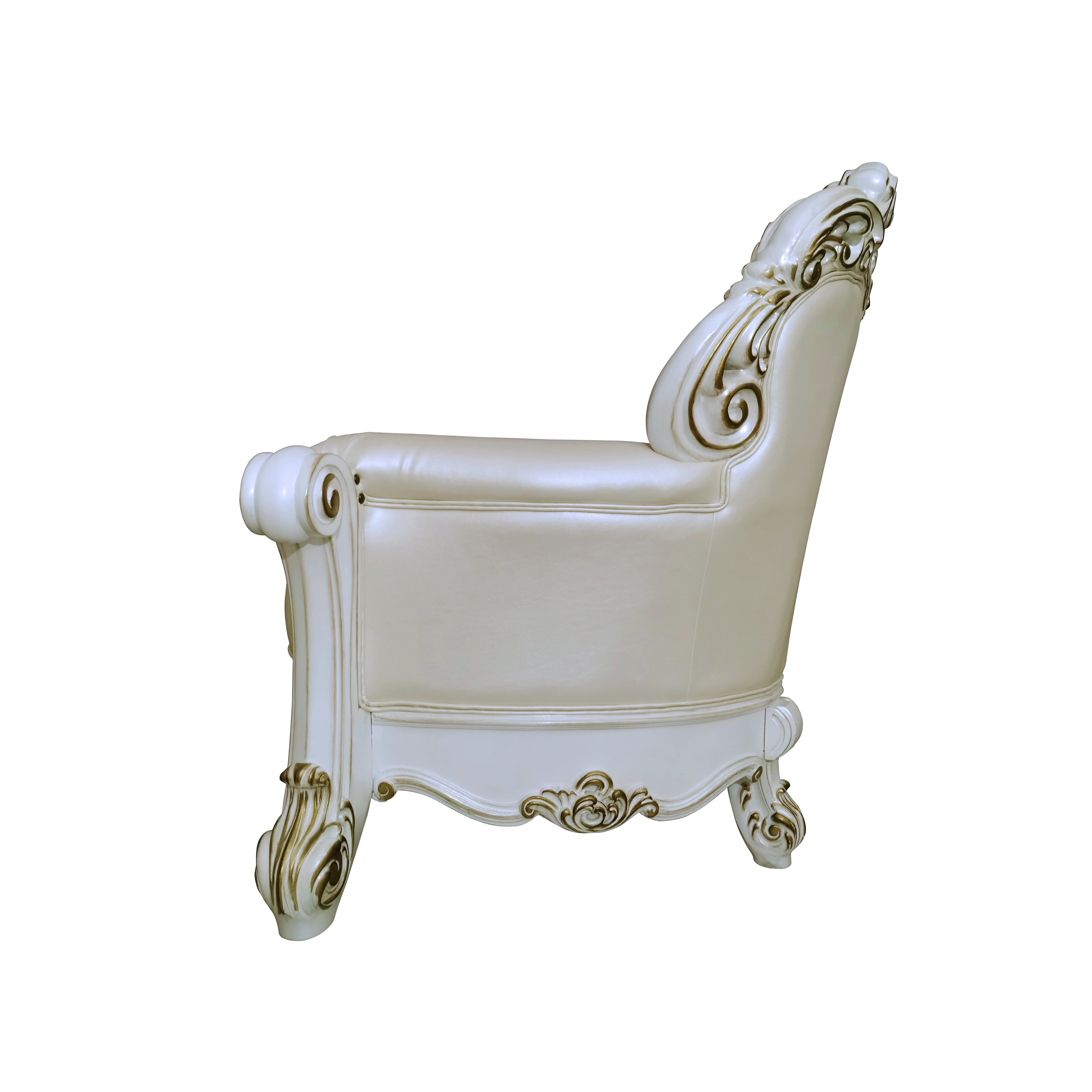 ACME Vendome Chaise w/2 Pillows, Synthetic Leather & Antique Pearl Finish BD01523