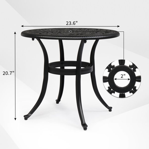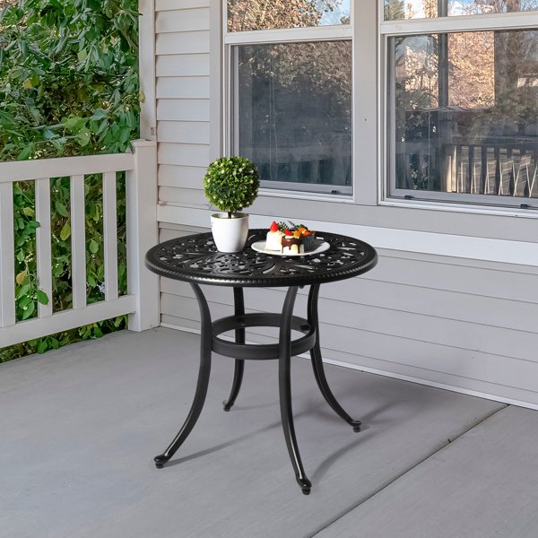 Home > Phoenix Cast Aluminum Round Table, Patio End Table Side Table, Cast Aluminum Cocktail Table, Outdoor Bar Table, Black