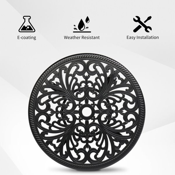 Experience the perfect blend of elegance and durability with the Phoenix Cast Aluminum Round Table. Designed with a taste for classic styles, this black round table enhances any patio, garden, or balcony setting. The intricately designed tabletop showcases a timeless openwork phoenix pattern, adding a touch of nobility and vintage charm. This versatile piece can be used as an end table, side table, cocktail table, or even as a chic outdoor bar table, making it ideal for hosting gatherings or simply enjoying a peaceful outdoor moment.