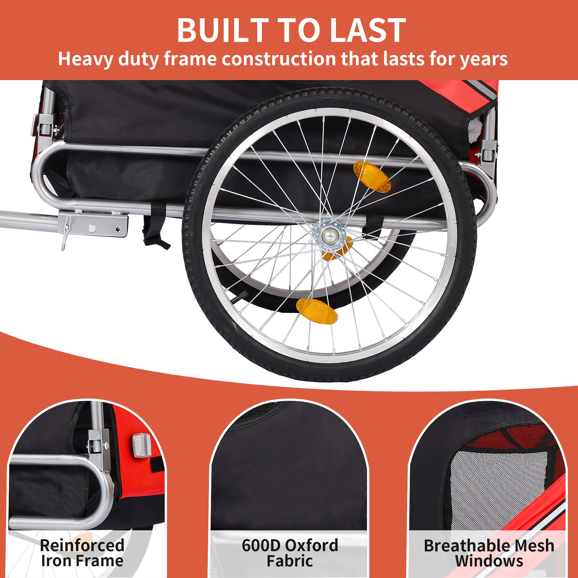 1.PET BIKE TRAILER: The bike trailer for dogs is an easy to way to take your pets with you, regardless if you are camping, hiking, walking, cycling, or anything in between. Suitable for medium dogs less than 20.75" in length and less than 44 lbs. in weight.