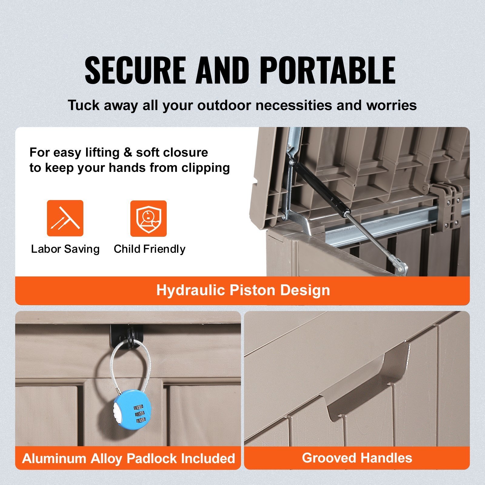 Home > VEVOR Deck Box, 120 Gallon, 56.3" x 26.6" x 23.8" Outdoor Storage Box, Waterproof PP Deckbox with Aluminum Alloy Padlock, for Patio Furniture, Garden